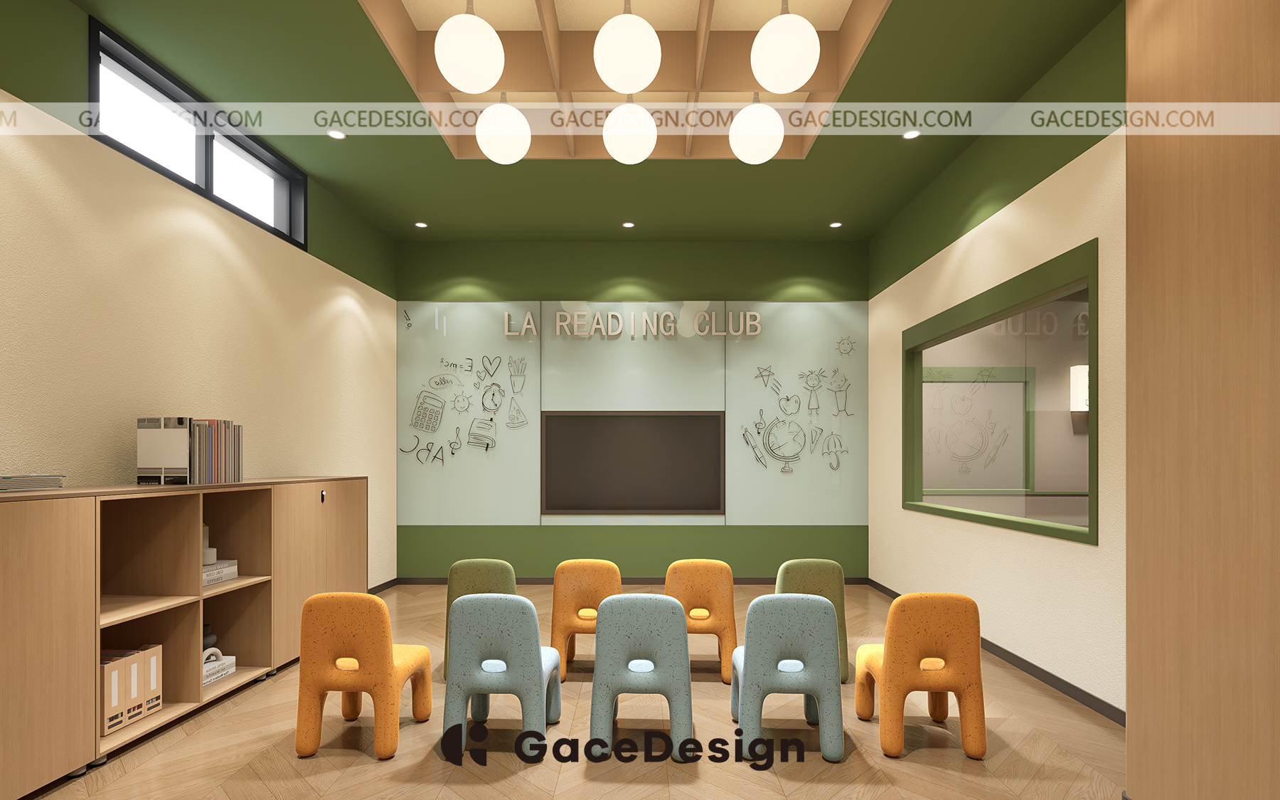 3:動靜相結合,實現書店,繪本角,舞臺區,咖啡吧,戲劇區,英語教室等復合型功能需求。