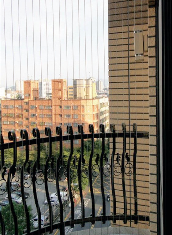 一般公寓大廈管委會(huì)對(duì)于建筑外觀都有統(tǒng)一規(guī)定,無(wú)法任意加裝傳統(tǒng)鐵窗,隱形鐵窗便應(yīng)運(yùn)而生。在遠(yuǎn)處就看不到、符合不破壞建筑外觀的規(guī)定,而鋼索間的縫隙小,小朋友拉不開(kāi)、也無(wú)法將頭伸入而發(fā)生卡住情形,所以能兼顧美觀與安全。