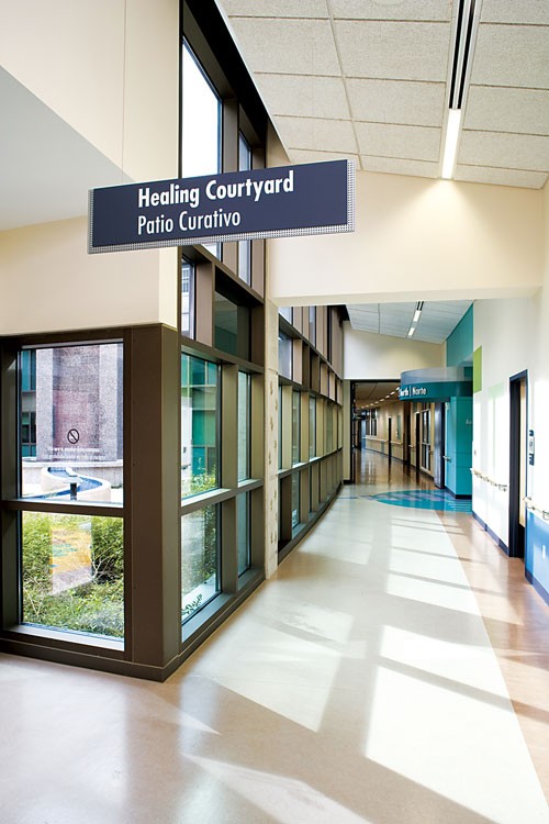 奧斯汀市因致力于推進綠色建筑的實踐活動而聞名于世,這家融合了德州中部社區(qū)活動文化的醫(yī)院作為700英畝新城發(fā)展項目的一部分,位于奧斯汀市前機場 所在地,占地473,000平房英尺,擁有169個床位,整體設計具有獨特的視覺美感,并在很大程度上降低了建筑對周圍環(huán)境的消極影響。該醫(yī)學中心包括一 個天然氣發(fā)電廠,一個自然光照空氣新鮮的庭院,天然景觀和各種環(huán)境友好型裝飾物,所有這些都為德州中部地區(qū)營造了一個優(yōu)秀的康復治療中心。中心總裁兼首席 執(zhí)行官Robert I. Bonar在接受采訪時表示,中心一貫放眼于創(chuàng)建一座世界級的醫(yī)療機構,成為第一家得到LEED認證的醫(yī)院正是其中的一部分。取得LEED認證的動力并不 單單是環(huán)保,因為一家綠色醫(yī)院對于病患的康復更具有深遠的影響。