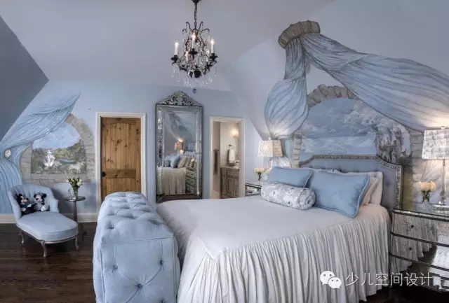 設計的壁畫,這與童話的主題,品味相輔相成,時尚典雅,讓人產生幻想的空間,從而解決了房間里面天花板和墻壁的問題。