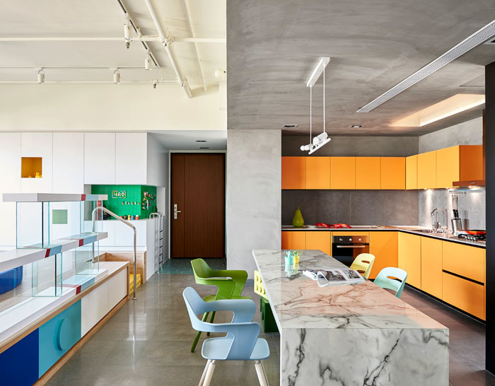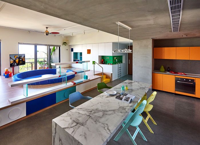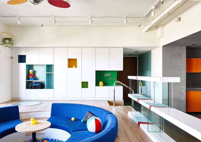 這是位于臺灣高雄的一座公寓,年輕的屋主希望將原先的公寓改造,作為樂高發(fā)燒友,他們希望新的設計可以融入樂高的元素,不僅滿足了自己的喜好,也讓家中的小朋友有娛樂的空間。