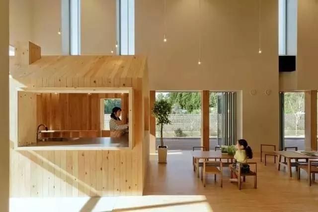 內(nèi)部設(shè)施簡單,大部分空間都可以進(jìn)行功能轉(zhuǎn)換,有大量空曠的空間,可以供小朋友自由活動(dòng)。幼兒園的名稱和班級(jí)的標(biāo)牌,采用花園里種植的日本櫸樹制作的,既親近自然,也是對孩子們的生態(tài)教育。