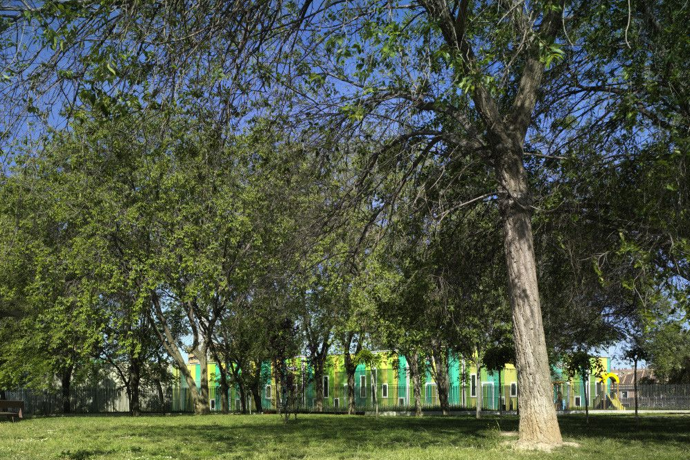 在西班牙一處風(fēng)景秀麗擁有各種綠植的地方,周圍的樹木會(huì)隨著四季不同而呈現(xiàn)出不同的顏色,在美麗的環(huán)境坐落著一家幼兒園。