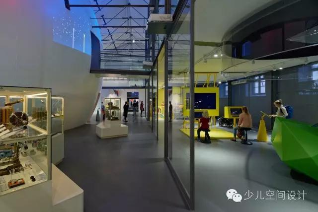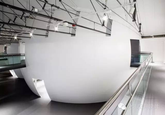在大廳里,兩個宏大體量較天花板又上升了10米,一個體量繃緊而堅硬,另一個體量柔軟而具有波動性。它們由橋梁相連,人們通過橋梁來回走動。游客會產(chǎn)生“哇”的驚嘆感,并被引入充滿誘惑和想象力的迷人世界,它激發(fā)人們的欲望和好奇心來參與學(xué)習(xí)、探索和創(chuàng)造的過程。