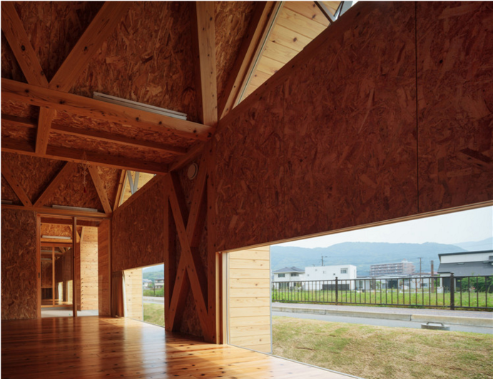 屋頂結構采用折疊板設計,無柱空間是通過運用木桁架梁屋頂結構實現的,形狀像一塊折疊板。所有支撐屋頂結構的承重墻都被布置在建筑外圍?,F在這座建筑分成了兩個保育室、衛生間等,但將來也可以轉換為一個大房間。