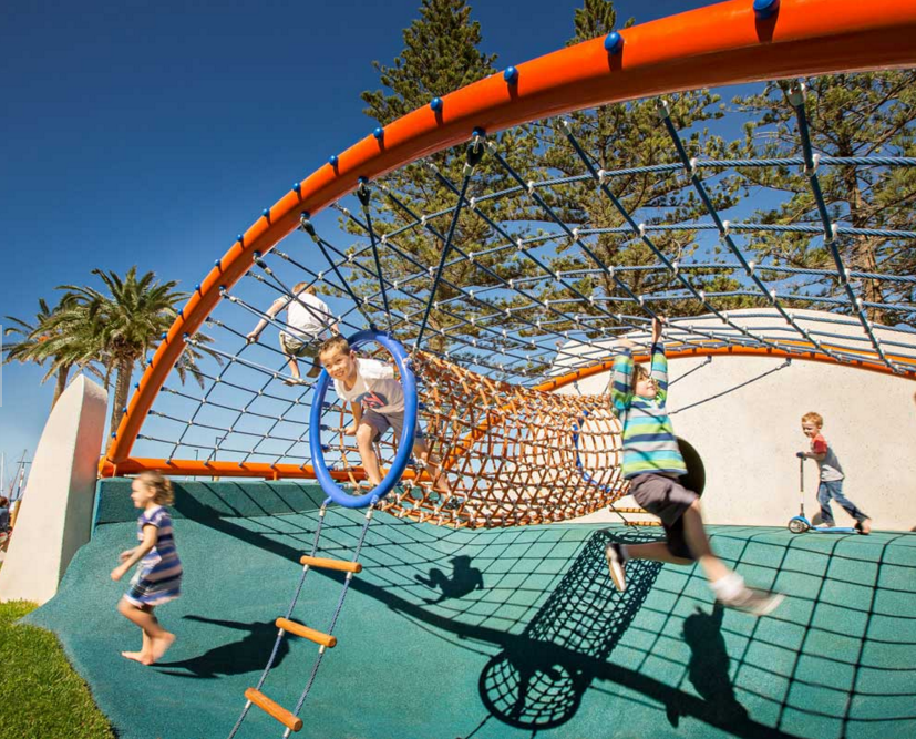 在澳大利亞亞格萊內爾格前灘游樂場將海灘之旅改造成一場冒險之旅,以新型、富于想象力和創新的方法游樂孩子們。該游樂場為了改善自然游樂場以及危機-效益原則,將有身體、感覺、認知和智力殘疾的兒童融入進來。