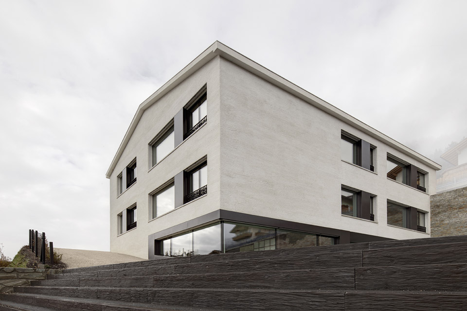 就像這些山區(qū)的民居建筑一樣,他們也把自己的體重靠在山坡上.。這兩個(gè)主體結(jié)構(gòu)的位置是由多功能廳連接的,它也為公眾服務(wù).。學(xué)校周圍的慷慨開放的空間,作為兒童游樂場(chǎng)和運(yùn)動(dòng)區(qū)。此外,這些空間成為一個(gè)露天舞臺(tái),通過(guò)額外的元素,最受青睞的性格一般可用的會(huì)議afers鎮(zhèn)的地方。顏色和材料的概念正在執(zhí)行減少的外觀,關(guān)于建筑物的大小和體積。它強(qiáng)調(diào)和諧融入村莊周圍。白色粉刷外墻,其結(jié)構(gòu)一直保持粗糙,給直接對(duì)比黑暗的電化鋁窗框。