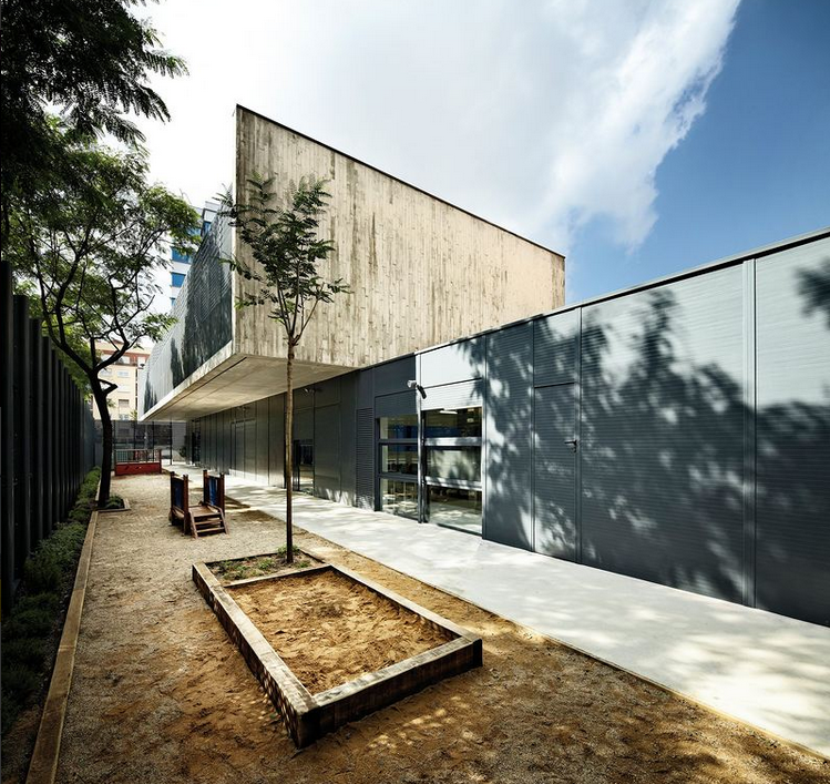 位于西班牙的巴薩羅納馬拉加幼兒園,重新設(shè)計的馬拉加庭院,坐落于巴薩羅那的街道內(nèi)部,與尼加拉瓜、柏林、紐馬以及埃涅伊德街道相鄰。它已升級成一小座教學樓:幼兒園。矩形的場所連接著分隔墻的其中一個封閉建筑體,另一面面對著庭院。