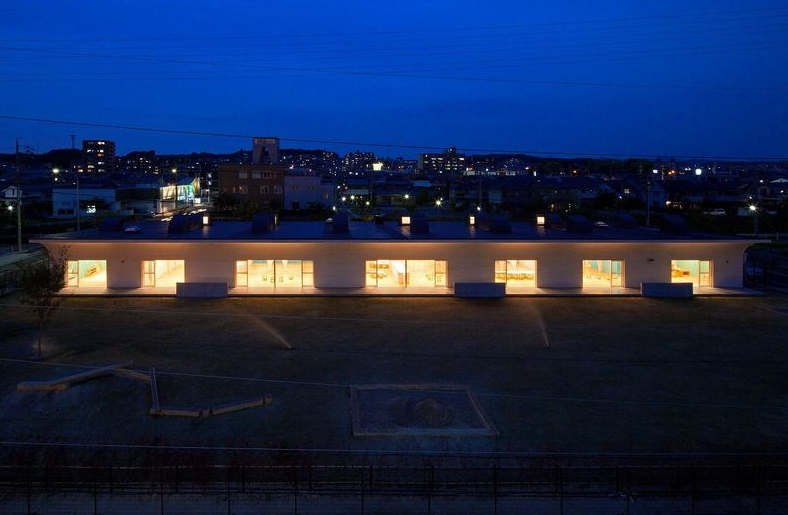 一所位于日本愛知縣張地區的旭城這是給五歲一下的一百多個孩子使用的幼兒園,在過去很多的幼兒園中孩子們的日常活動就像是吃飯玩耍和上廁所或者是睡覺都會是在分開的各個室內進行的,然后設計師的目標是想在一種連續時間狀態下去捕捉孩子的這些活動,并在這個時間容器中布局建筑以及藝術繪品,共同創造出好似一個立體圖畫書般的幼兒園。(幼兒園室內設計)