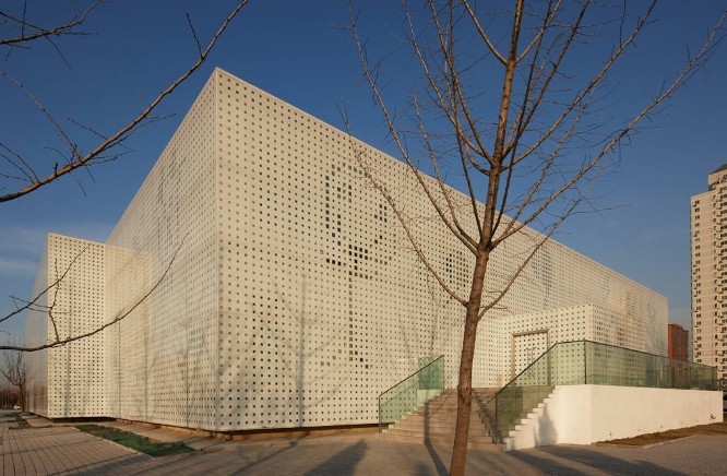 家盒子的外觀,設(shè)計(jì)師采用了一個(gè)多孔的造型結(jié)構(gòu),為了避免室內(nèi)過(guò)熱。同時(shí)更傾向于把這個(gè)外觀看做一張白紙,利用孔洞大小變化制造出了一系列兒童涂鴉的形狀,并以此來(lái)呼應(yīng)主題。使得整個(gè)兒童空間的造型設(shè)計(jì)非常巧妙、獨(dú)特。