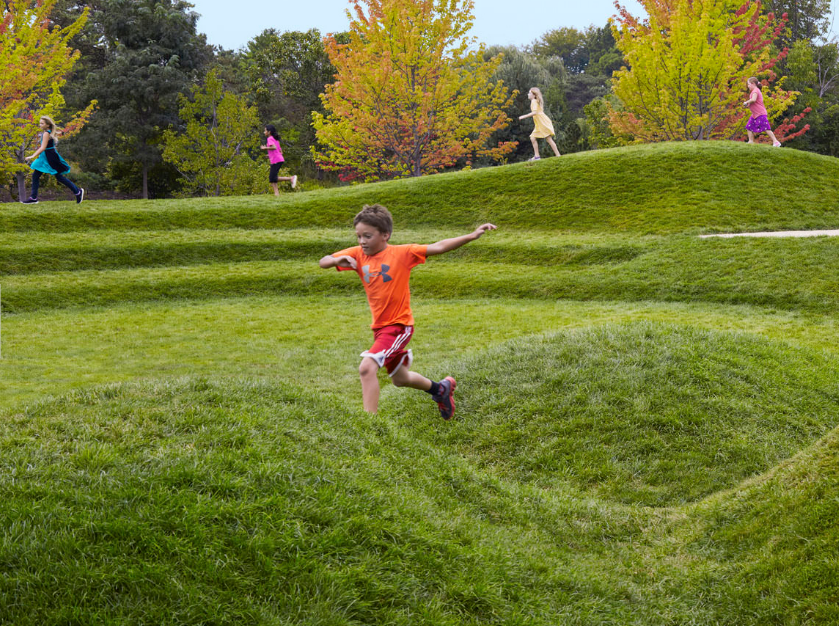 雷根斯坦學習園區是芝加哥植物園新設的環境探索中心和自然游樂場。這個占地六英畝的園藝園區作為科學園藝中心,為充滿活力的家庭社區服務,提供與自然環境的互動體驗,每年游客量超過12.5萬人。該設計促使家庭和各年齡段兒童參與豐富的戶外體驗,例如以探索為導向的學習和游戲,從而更深入了解生態系統。廣闊的花園提供各種自然體驗和探索活動,游客穿梭在草地、戲水小路、石塊、多樣的林地種植和柳枝隧道中。這個再生工程被設想為通向自然世界的門戶,一年四季提供探索與創造的機會。