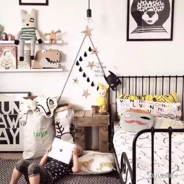 10、要適當(dāng)留白,兒童房裝修布置切記不要滿滿當(dāng)當(dāng),墻面也要注意留白,兒童喜歡在墻面隨意涂鴉,可以在活動(dòng)區(qū)域掛一塊白色的木板,讓孩子有一處自由發(fā)揮的天地。