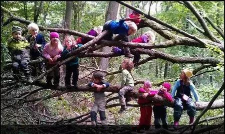 在很多地方的幼兒園敦促孩子盡早讀書寫字的時候,幼兒園的誕生地德國和其它一些國家的森林幼兒園,卻正走在一條返璞歸真、投入自然懷抱的路上。
