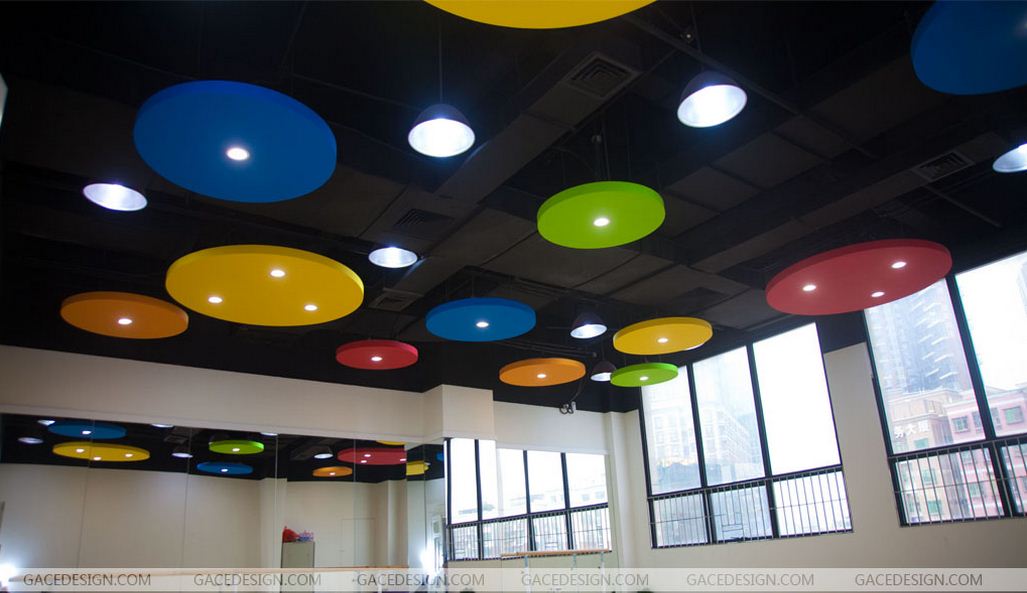 四、吊假頂:如果高度不高可早教機構設計在大廳的四周邊做吊頂,中間只裝配上新穎的吸頂燈。這種吊頂可用木材夾板成型,設計成各種形狀,再配以射燈或筒燈。這樣做吊頂的目的是在視覺上增加大廳空間的層高,大面積的大廳比較適合做這類的吊頂。