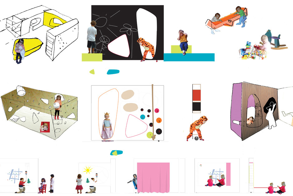 11、墻是這所幼兒園空間的核心設計元素。一般意義上,墻體只承擔分隔空間和隔音的作用,但這里被賦予了更豐富的功能。或者說,家具與墻的界限變得非常模糊。簡單的折疊和推拉墻面即可改變房間的大小,創造出容納新功能的空間。墻面采用不同的材質,擁有鮮艷的色彩,并且開設了許多形狀大小各不相同的洞口。