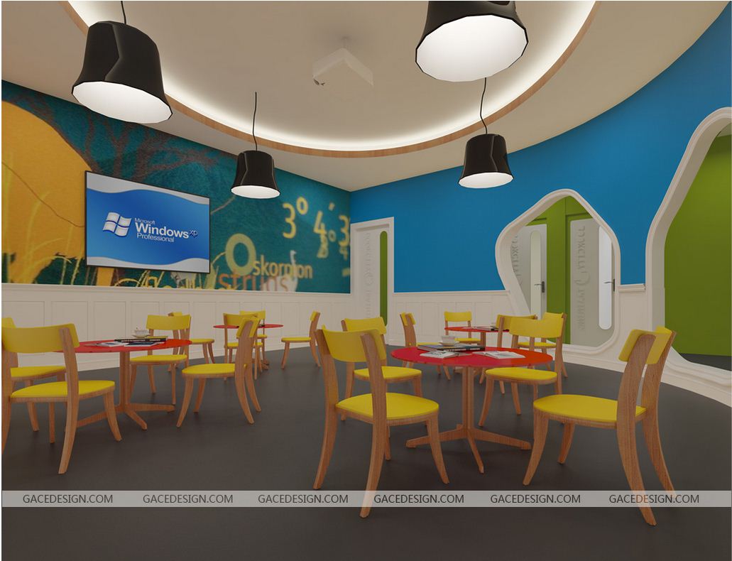 運動休閑場所,不同規模的幼兒園有不一樣的設計布局,有室內室外之分,小型幼兒園多在室內,幼兒園墻面的裝飾裝潢,日趨多樣化,目前常用的是貼瓷磚,刷涂料,制作墻面壁畫,利用手工制作或工藝品進行貼掛。有越來越多的幼兒園采用卡通壁畫來裝飾兒童教育空間設計墻面,幼兒園墻面裝飾裝潢逐漸成為幼兒園室內外環境裝飾布置主要的一個組成部分,利用這一點可以很好地創建與教育相適應的環境。